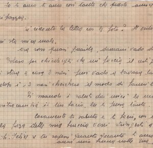 Felice, ti prego di non alludere (sic) / mai nelle tue lettere a quanto è / fra noi, perché credo che qualcuno / me le legge; scrivile (?) in tedesco: capisco lo stesso.