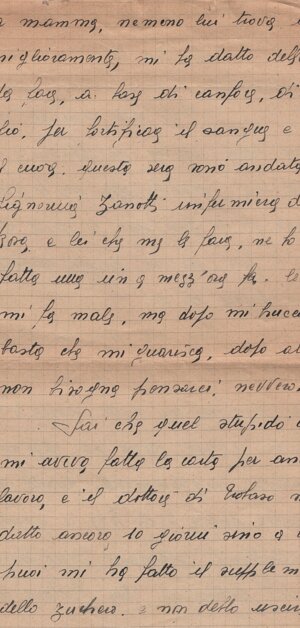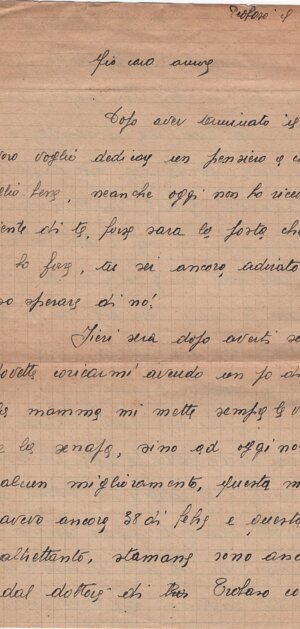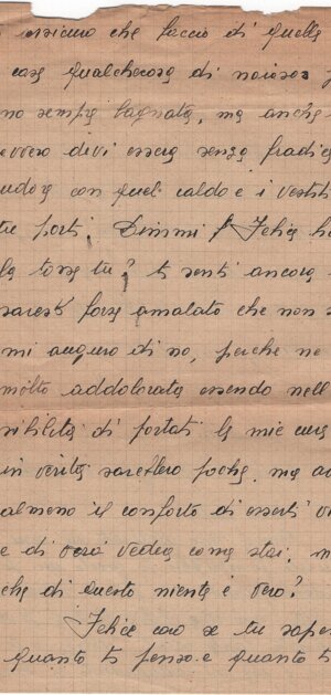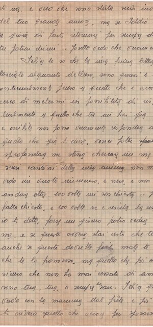 Il Peter <h>a scritto a tua mamma che sta bene. La Iuili (?) vuol / venire in Italia: forse la mamma te l’ho (sic) avrà scritto il perché; / se no, di<m>melo: te lo scriverò io. Domani ti scriverò un’altra cosa, ciao / amore