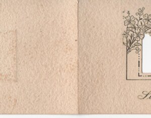 4b: due buste: una 145 x 94 mm (come la seconda di 4a), con lettera per complessivi 2 ff. A4 quadrettati, uno ridotto a metà; in busta 112 x 72 mm. un biglietto che reca a atampa in 1r “Sinceri Auguri” sotto una cornice, ed in 2r sotto l’immagine a colori incollata (40 x 28 mm.) che si scopre aprendo verso sn, mano di Josette: “Giungano a te i più cari auguri / di buone feste, che tanto ti amo. / Tua Josette”.